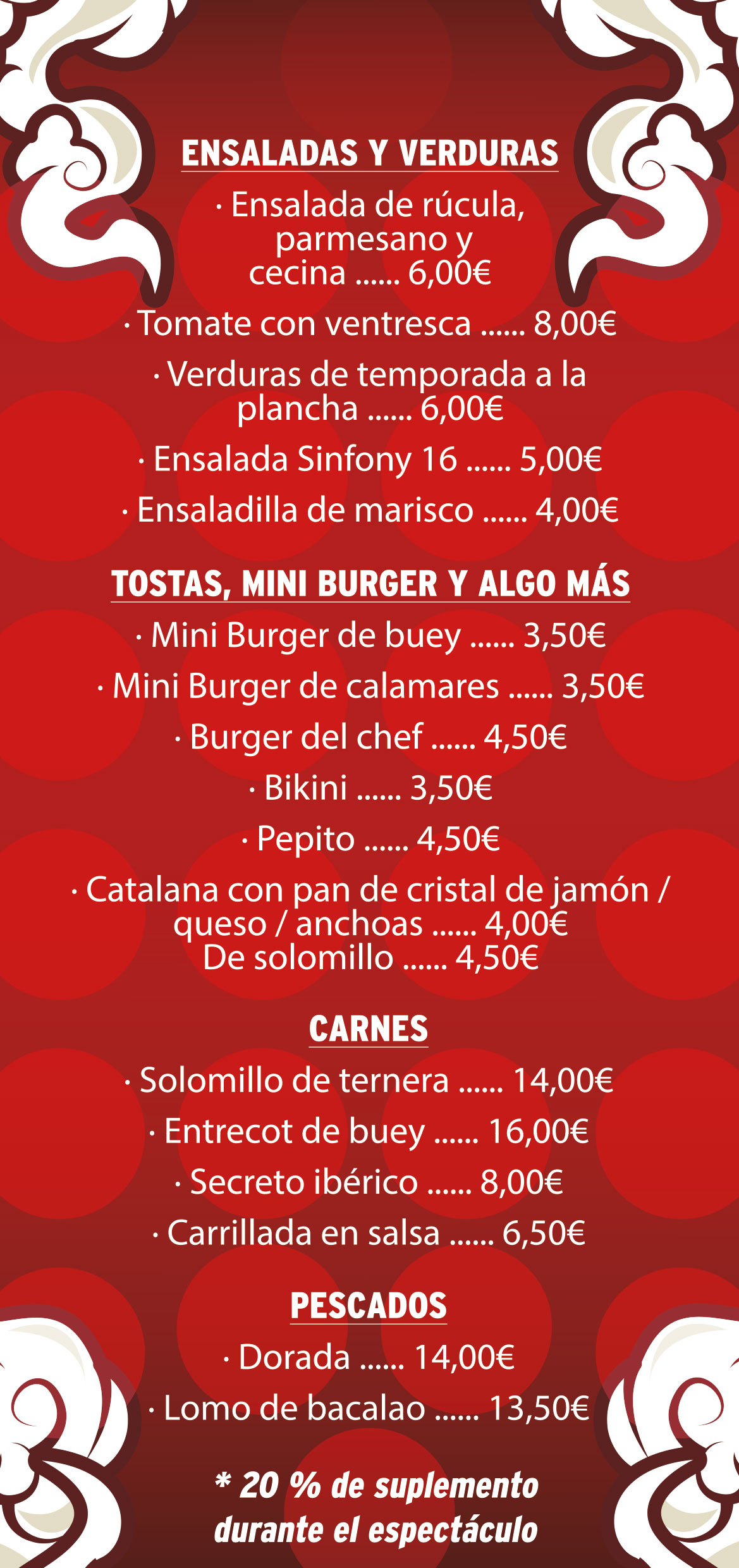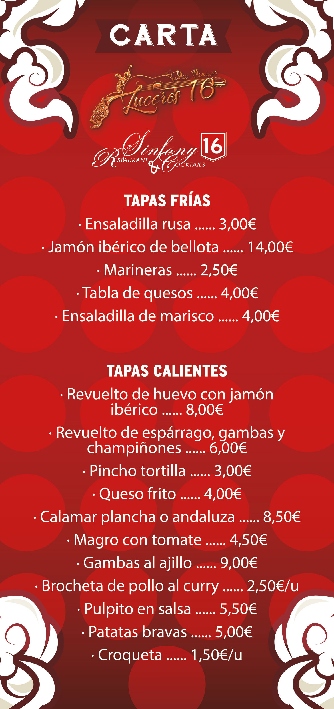 ADEMÁS… ¡TENEMOS LA CARTA EXCLUSIVAMENTE PARA TI EN LA WEB! Válida en sinfony 16 y tablao flamenco luceros 16… ¡DESLIZA!